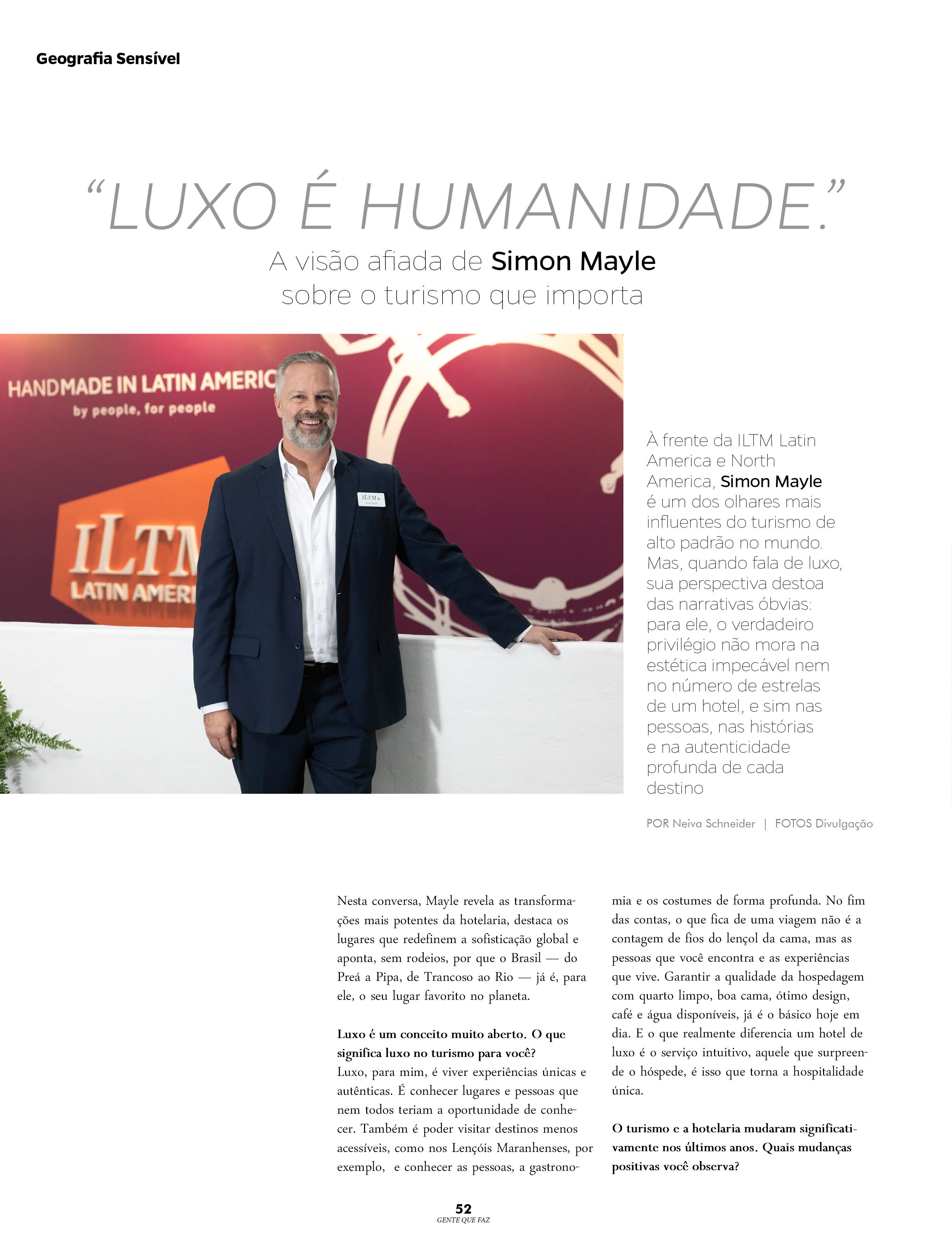 À frente da ILTM Latin America e North America, Simon Mayle é um dos olhares mais influentes do turismo de alto padrão no mundo. Mas, quando fala de luxo, sua perspectiva destoa das narrativas óbvias: para ele, o verdadeiro privilégio não mora na estética impecável nem no número de estrelas de um hotel, e sim nas pessoas, nas histórias e na autenticidade profunda de cada destino. Nesta conversa, Mayle revela as transformações mais potentes da hotelaria, destaca os lugares que redefinem a sofisticação global e aponta, sem rodeios, por que o Brasil — do Preá a Pipa, de Trancoso ao Rio — já é, para ele, o seu lugar favorito no planeta.