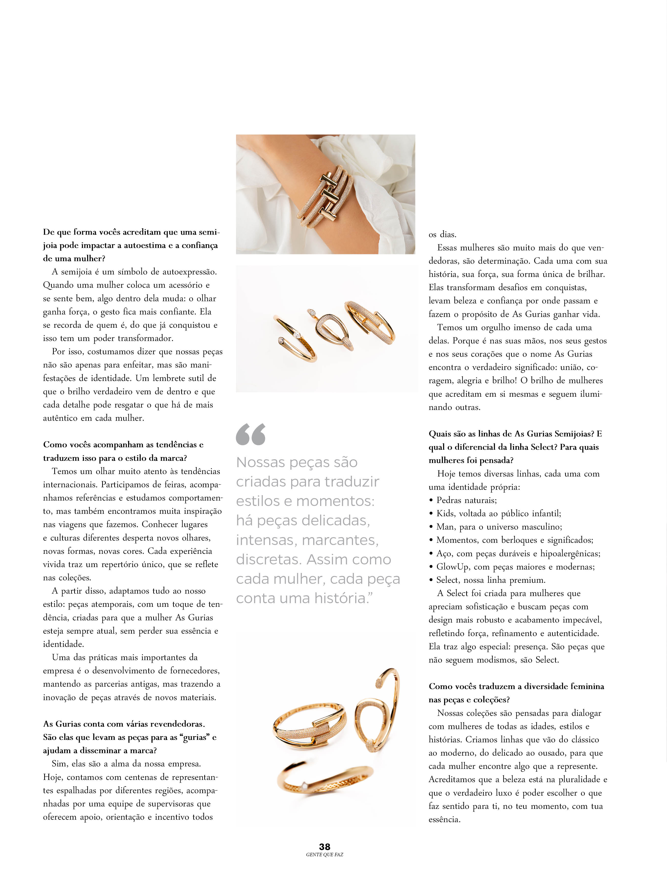 Por isso, costumamos dizer que nossas peças não são apenas para enfeitar, mas são manifestações de identidade. Um lembrete sutil de que o brilho verdadeiro vem de dentro e que cada detalhe pode resgatar o que há de mais autêntico em cada mulher.