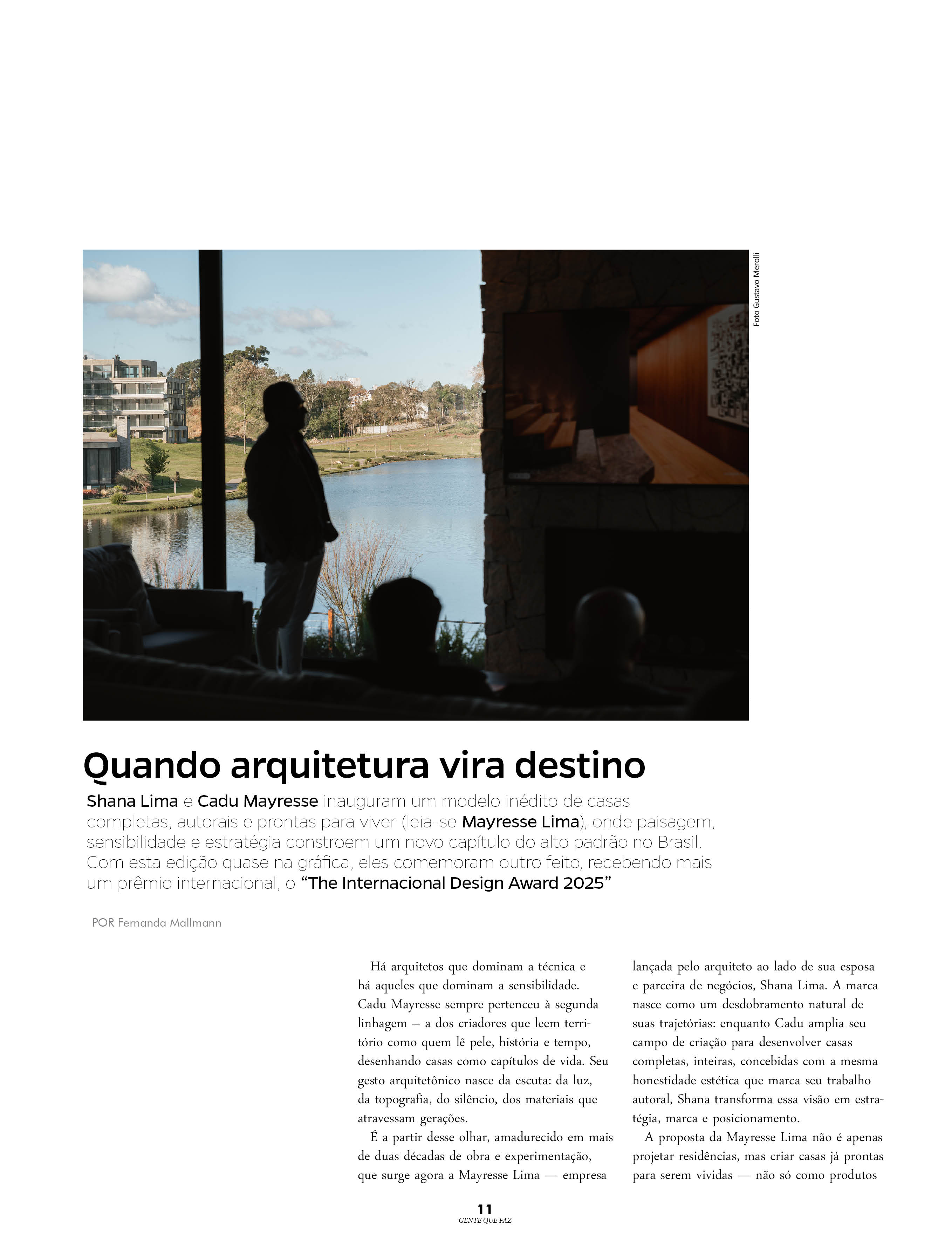 Shana Lima e Cadu Mayresse inauguram um modelo inédito de casas completas, autorais e prontas para viver, onde paisagem, sensibilidade e estratégia constroem um novo capítulo do alto padrão no Brasil. Com esta edição quase na gráfica, eles comemoram outro feito, recebendo mais um prêmio internacional, o “The Internacional Design Award 2025”